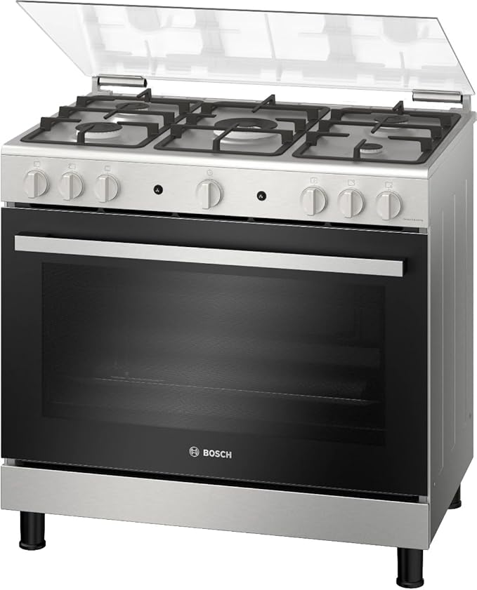 بوتاجاز بوش غاز ، 90 × 60 سم، 5 شعلات، فرن سعة 125 لتر،لون فضي - HGV1F0U50S